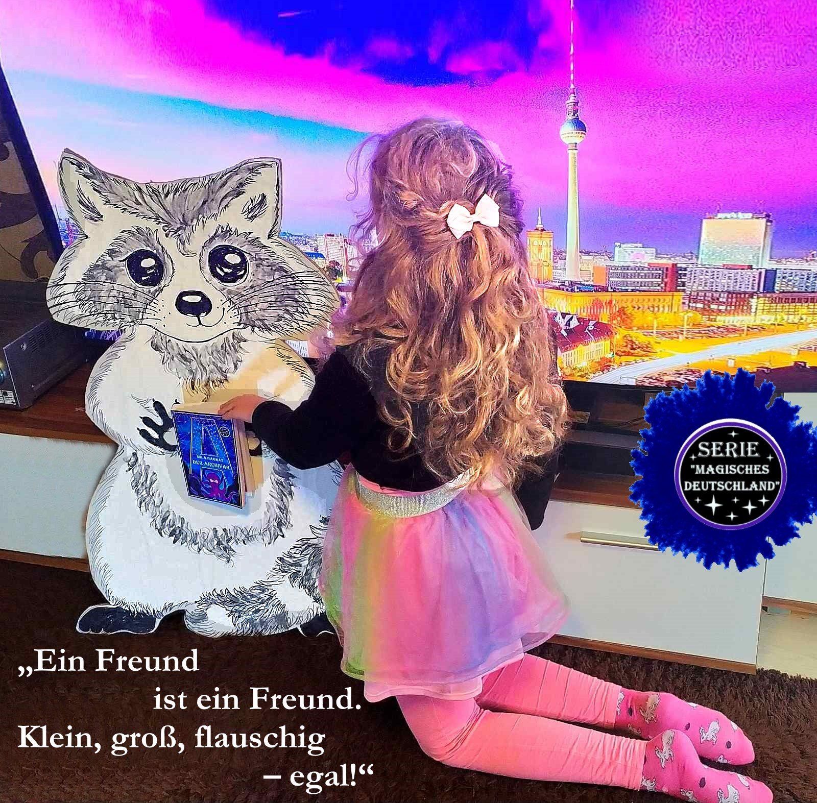 Nein, unmöglich! Abenteuer passieren doch immer woanders! In Berlin gibt es keine Monster, keine flüsternden schwarzen Schatten hinter den gruseligen Kellertüren und… und Waschbären können gar nicht sprechen! Es gibt keine unsichtbaren Zauberbuslinien, keine magischen Stadtviertel, in denen die uralten Geschichten wieder lebendig werden und die berühmten Buddy-Bär-Skulpturen verstecken auch keine geheimen Tickets in ihren runden Pfoten… Ach, nein? Hast du mal nachgeschaut? In der Serie „Magisches Deutschland“ ist alles möglich!